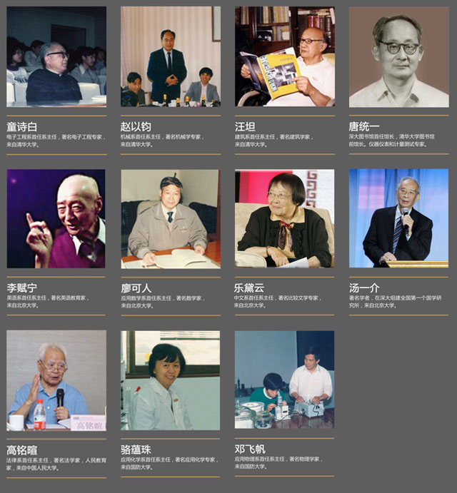 北京大學援建中文、外語類學科,清華大學援建電子、建筑類學科,中國人民大學援建經濟、法律類學科,一大批知名學者云集深圳大學。