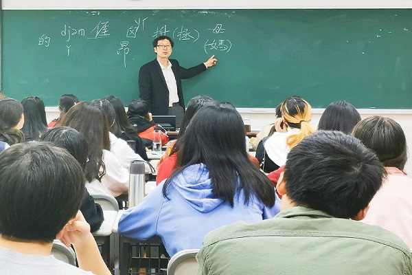 11月19日上午,第二場教學觀摩課是由人文學院宮欽第老師主講的《古代漢語》,本節課的主要內容為代詞。宮老師在課堂上首先帶領大家學習古文字的練習,他用 “兒”字舉例,從甲骨文到金文,再到小篆,如小兒頭顱未合之形,十分形象。課前熱身之后,本節課的主角出現,即代詞。宮老師先講解了代詞的分類,在人稱代詞中,宮老師讓會說客家話的同學來展示當地的方言,因為一些南方的方言的很多保留了上古漢語的特點,其中北方的一些方言也有留存,用方言的舉例使語言更加具有生活性與趣味性,在場的各位青年教師都全神貫注的聽講,感受到了古代漢語的無窮魅力。
