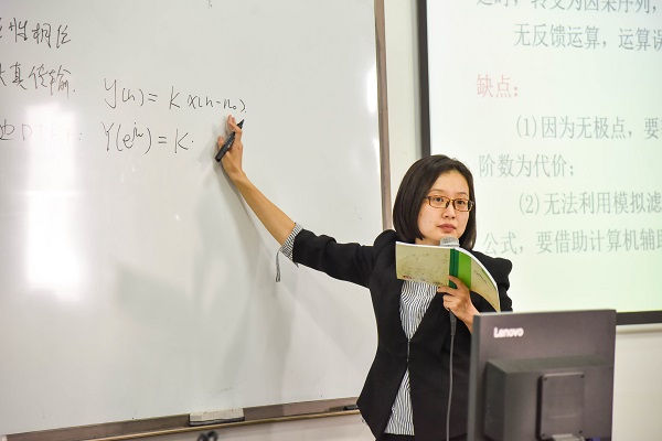 11月20日下午,第五場教學觀摩課是醫學部丁惠君老師的《醫學數字信號處理》,本課堂的主講內容是FIR數字濾波器的設計。丁老師以對上一章內容簡單回顧的方式,引入到本課堂的重點內容。為了加深學生對核心概念的理解,丁老師通過公式推導,核心概念公式對比等方式,抽絲剝繭,一步步引導學生對核心定義的領悟。最后,丁老師以課堂例題的形式,進一步強化學生對重難點知識的理解。丁老師語言親切、儀態自然、授課思路清晰、邏輯性強、重難點突出、課堂氣氛好、師生互動頻繁。
