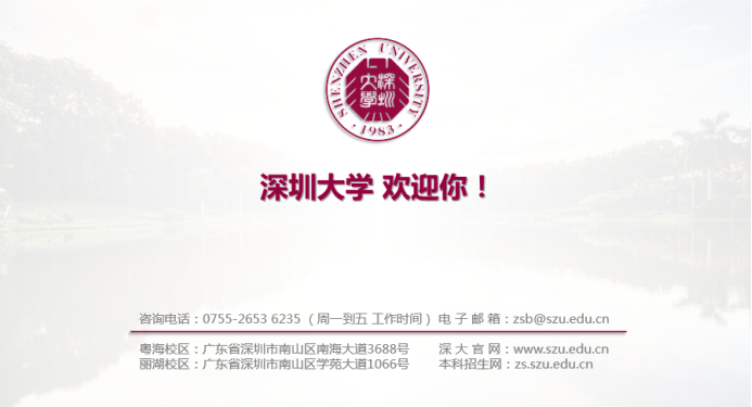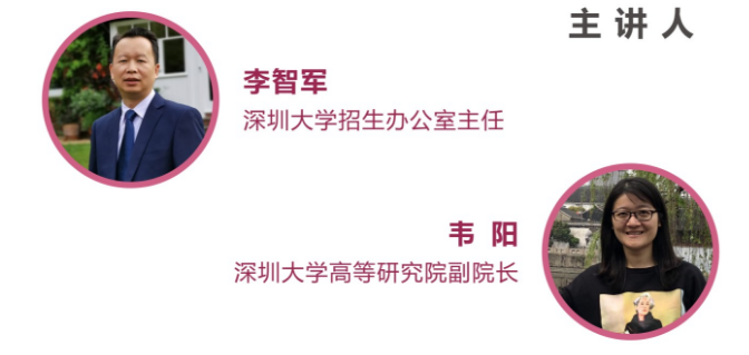 本場講座,兩位嘉賓將帶領同學們全面了解深圳大學的優勢專業、培養特色、往年錄取情況、最新高招政策,以及深大特色實驗班的培養特色和斐然成績,敬請關注。