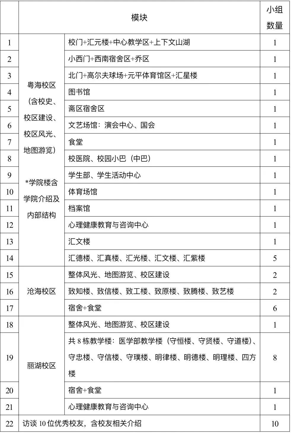 比賽內容分為以下模塊,每個參賽小組從中選擇一項拍攝內容。