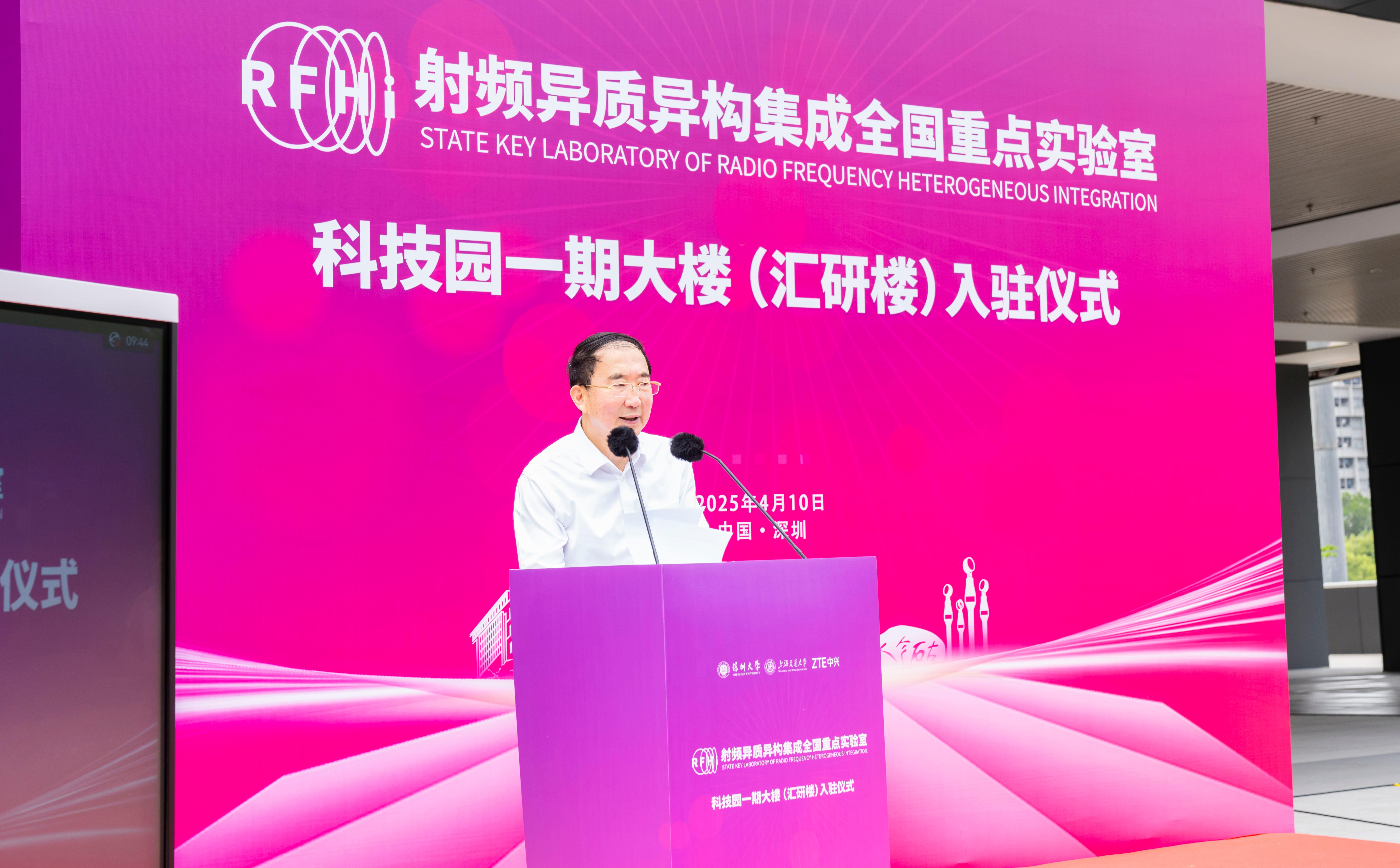 4月10日,射頻異質異構集成全國重點實驗室迎來發展進程中的又一重要里程碑——正式入駐落成啟用的深圳大學科技園一期大樓(匯研樓)。在上午舉行的入駐儀式上,深圳大學校長、全國重點實驗室主任、中國科學院院士毛軍發,深圳大學物理與光電工程學院特聘教授、中國科學院院士于起峰,中興通訊股份有限公司教授級高工、全國重點實驗室學委會委員向際鷹等共同為實驗室入駐新場地剪彩。深圳大學科學技術發展研究院負責人主持入駐儀式。
