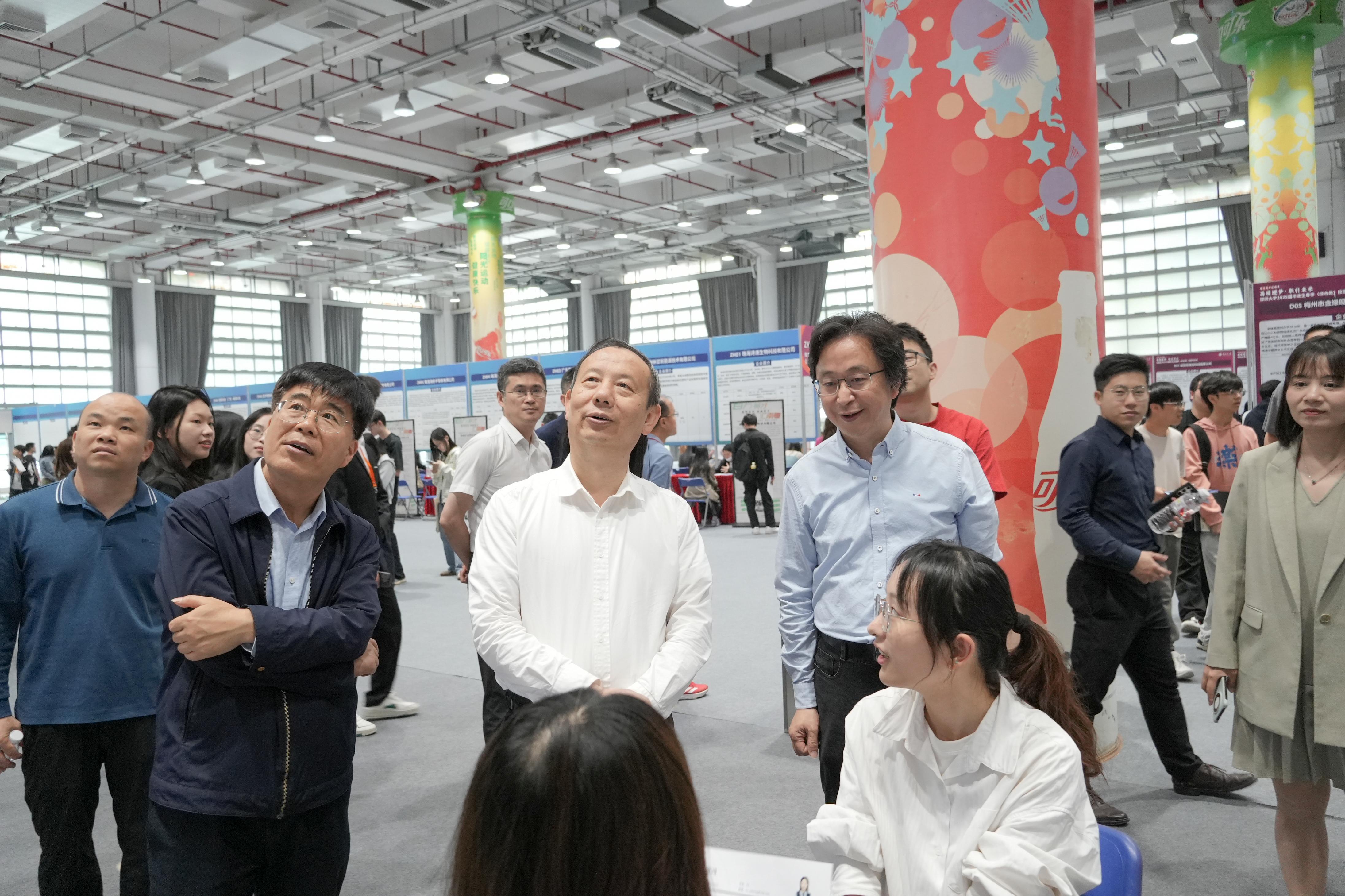 4月13日下午,由深圳大學學生就業指導中心主辦的“荔園逐夢·職引未來”2025屆畢業生春季(綜合類)校園雙選會在粵海校區羽毛球館舉行。深圳大學校長毛軍發、副校長汪永成以及學生部、各學院(部)負責人到招聘會與招聘企業溝通交流,為求職畢業生加油打氣。雙選會共接收簡歷5000余份,初步通過人數1500余人。