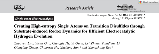 近日,深圳大學化學與環境工程學院任祥忠教授團隊在化學領域頂尖期刊《Angewandte Chemie》(影響因子16.6,中科院JCR 1區,TOP期刊)發表了題為《Creating High-entropy Single Atoms on Transition Disulfides through Substrate-induced Redox Dynamics for Efficient Electrocatalytic Hydrogen Evolution》的研究論文。深圳大學羅兆艷助理教授為論文第一作者,深圳大學任祥忠教授和加拿大西安大略大學孫學良院士為該論文共同通訊作者,深圳大學為第一作者單位和第一通訊單位。