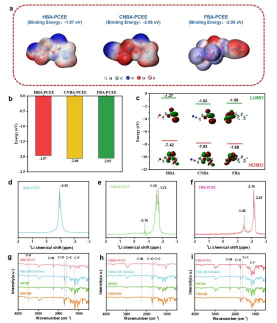 本文中,研究團隊選擇了不同電子基團的單體(如-OH為電子供體基團,-CN和-F為電子吸收基團),以研究這些基團特性對PIPS過程的影響,并闡明固態鋰金屬電池中性能變化的結果。實驗顯示,含有-CN和-F基團的單體引起了相分離,形成了一個被聚合物相包圍的3D塑晶相。值得注意的是,使用-F單體合成的PCEE(FBA-PCEE)在30°C下具有高達2.02 mS cm?1的離子導電性、高達0.75的鋰離子遷移數以及5.1 V的寬電化學窗口。此外,FBA-PCEE在鋰金屬對稱電池中表現出與鋰金屬陽極的優良界面穩定性。引入極性-F基團增強了聚合物的電子吸引能力,促進了聚合物段的低能量遷移,從而確保了全固態鋰金屬電池(ASSLMB)中的優異電化學性能。本研究通過聚合物化學誘導相分離為高性能PCEEs和高能量密度的聚合物鋰金屬電池的設計提供了新的見解。