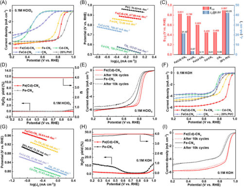 Fe(Cd)-CNx催化劑在酸性和堿性溶液中的電化學ORR性能