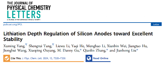 8. 深圳大學化學與環境工程學院張黔玲教授團隊在物理化學領域期刊The Journal of Physical Chemistry Letters(影響因子4.9,中科院JCR 2區)發表了題為“Lithiation Depth Regulation of Silicon Anodes toward Excellent Stability”的研究論文。深圳大學楊旭明助理教授和研究生湯晟睿為論文第一作者,張黔玲、劉劍洪以及南方科技大學谷猛副教授為該論文共同通訊作者,深圳大學為第一作者單位和第一通訊單位。